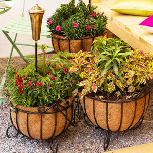 Yes, our cauldrons can brew up some magic too! Colourful, fragrant, vibrant magic! With the cocoliners already in, all you need to do is throw in some saplings, a hint of water, sprinkle on some love and that's the recipe for your own little spot of wonder. Available in two sizes, the cauldrons are low on short curled legs, that makes them perfect for a stairwell or driveway. Mix and match the cauldrons with our urns or cradles to create a flowery collage in your lawn or on your terrace.