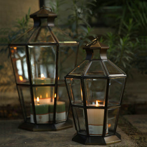 The bevelled glass lantern is a unique and stunning addition to your décor. It's perfect for adding a touch of elegance to any setting, and the octagonal shape makes it stand out from the crowd. Plus, the bevelled glass & the antique bronze finish gives it an extra bit of sparkle that will make you fall in love with it at first sight.