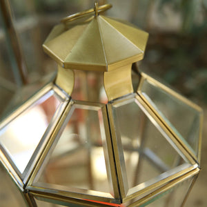 Bevelled Glass Octagonal Lantern Matt Brass Finish