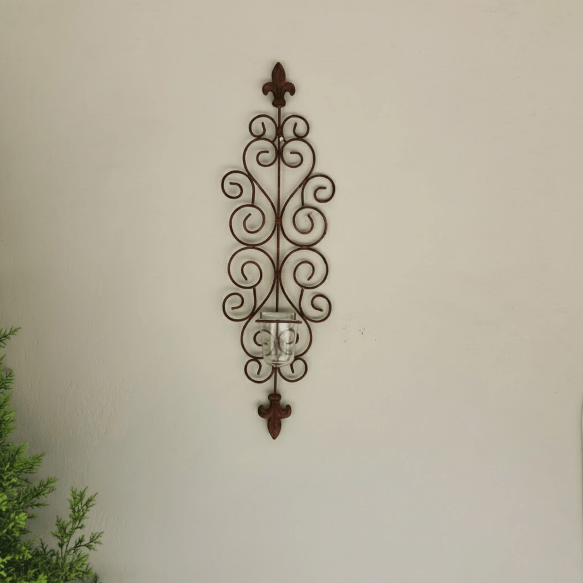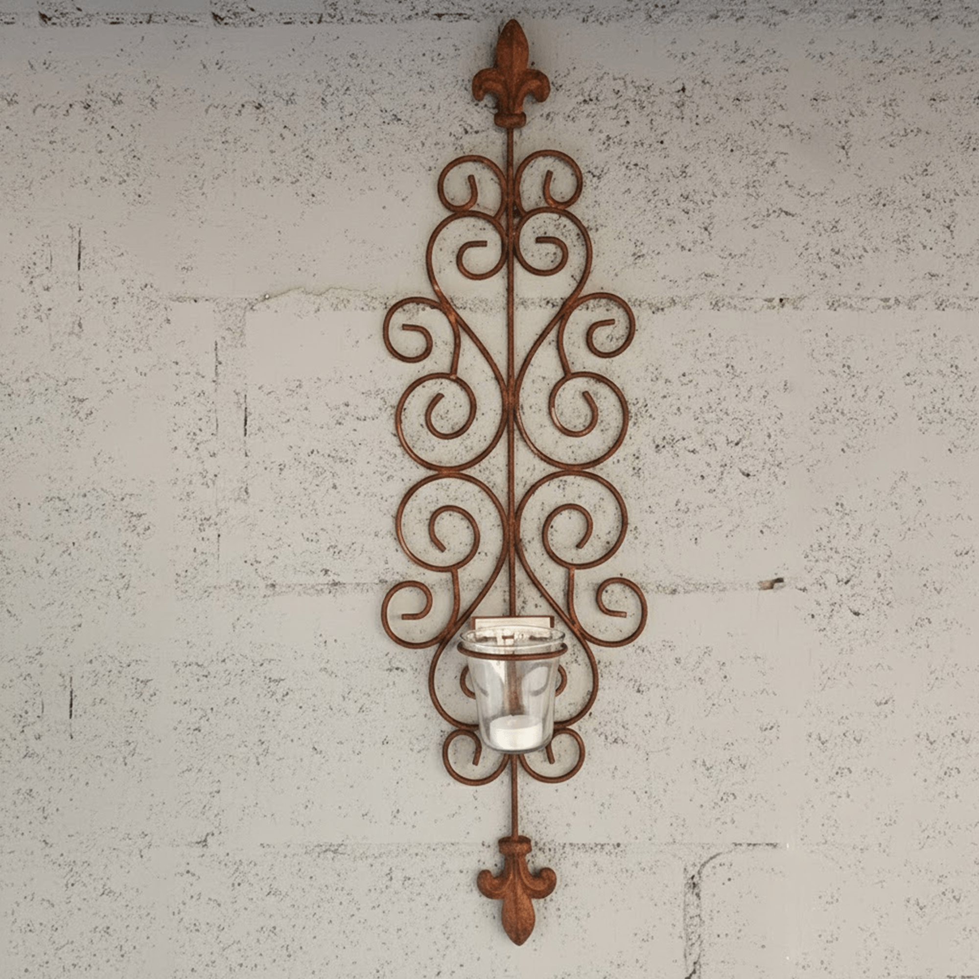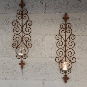 Bring timeless elegance to your walls with our Fleur-de-lys Wall Sconce T~light pair. Designed with graceful scrollwork and crowned with the classic fleur-de-lys motif, each sconce is hand-finished to evoke vintage, artisanal charm. Glass votive holders nestle the tealights, casting a soft, flickering glow that turns any wall into a canvas of light and shadow.