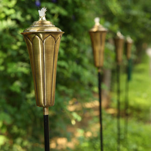 There is something truly exotic and magical about an oil lamp. Perhaps it is the stories of genies we grew up on or just the thought of faraway royalty but an oil lamp always brings its own atmosphere with it. Our lamps infuse that magic into your garden or courtyard. Use them on a table or ledge or raise them on our specially designed stakes to create a pathway in your garden or a circle of light around a barbecue. Our broad bottom basic lamps bring a whiff of the arabian oasis to your garden while the lotus lamps, slender and feminine could be straight out of an ancient rajasthani royal camp.