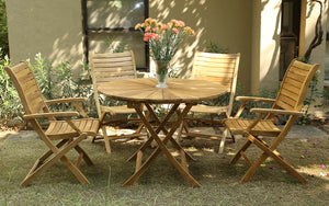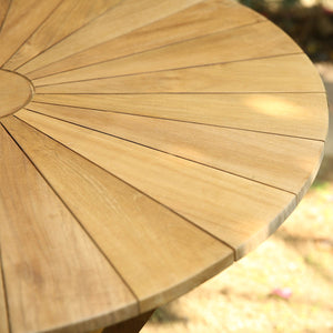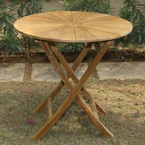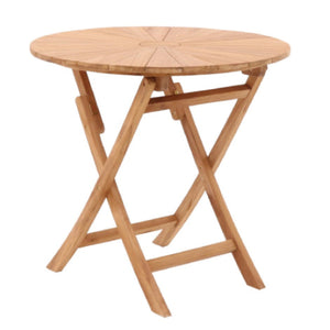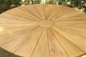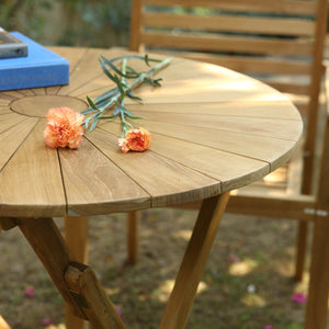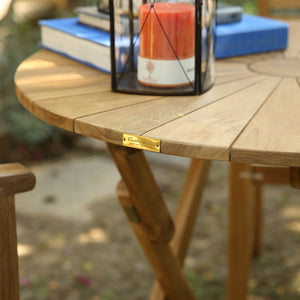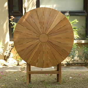 Matahari Round Table with parabola folding is perfect for both outdoor & indoor use. Handcrafted with 100% Teak Wood, natural wood wax finish, this table has a smooth surface to keep your coffee & magazines.
